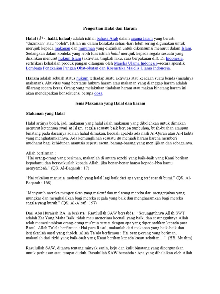 Contoh Makanan Halal Dan Haram Dalam Islam