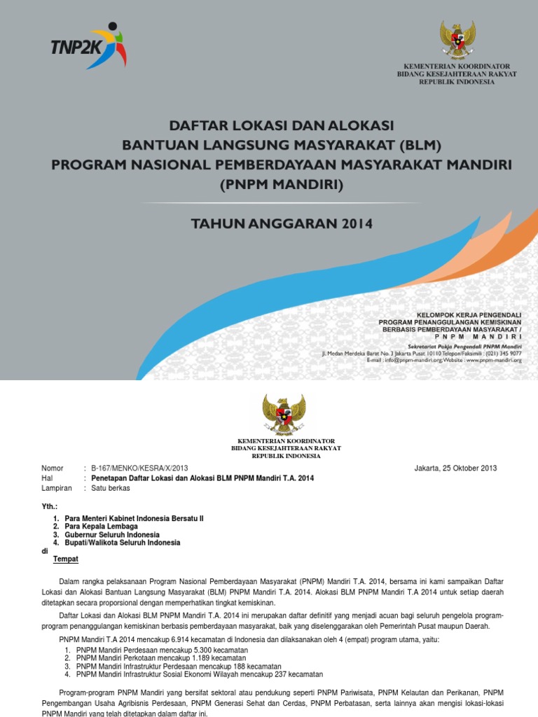 Buku Daftar Lokasi Dan Alokasi Blm Pnpm Mandiri 2014