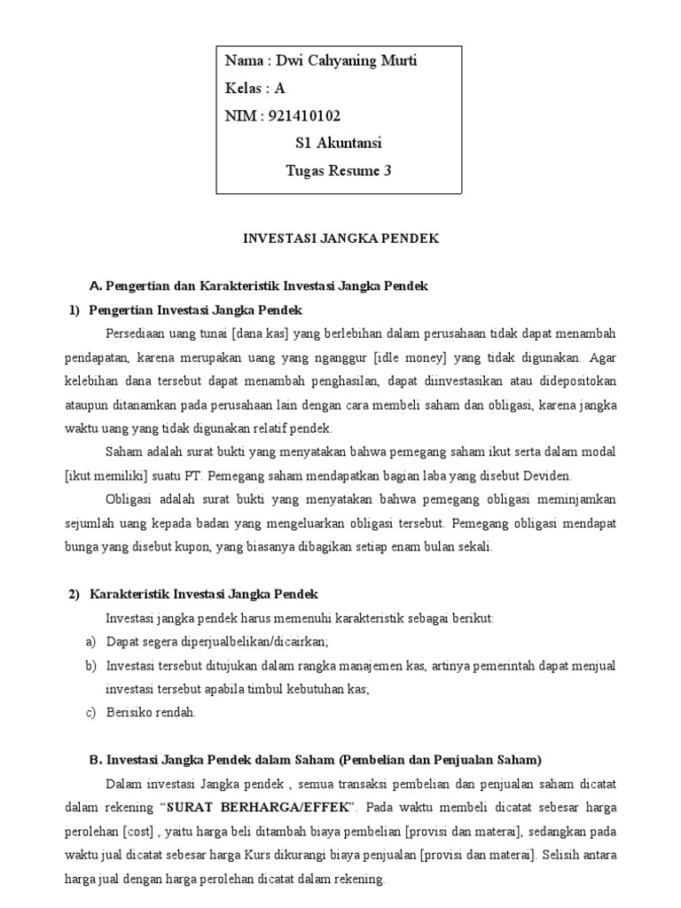 Contoh Soal Investasi Jangka Pendek Saham Berbagi Contoh