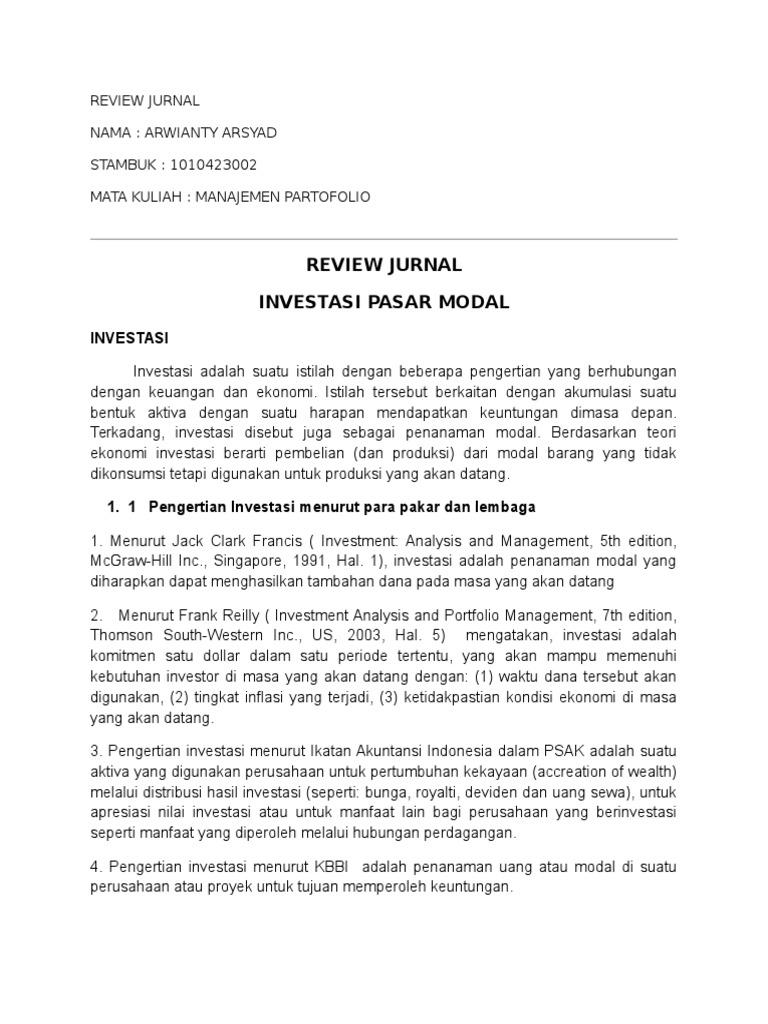 Review Jurnal Investasi Pasar Modal