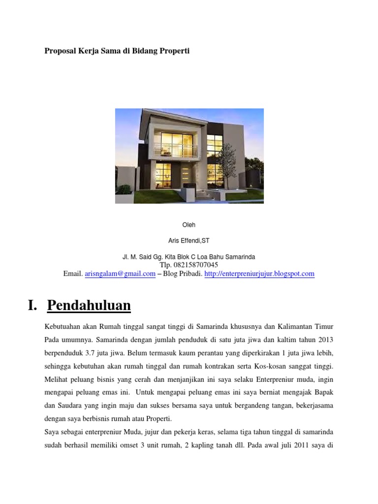 Contoh proposal / bisnis plan / rancangan usaha. Ada beragam jenis investasi yang dapat kita pilih. Menjadi developer properti bukanlah pekerjaan mudah tetapi akan menjadi sangat mudah jika kita tahu rahasianya, menguasai ilmunya dan berinteraksi dengan orang yang telah sukses sebagai pebisnis properti.