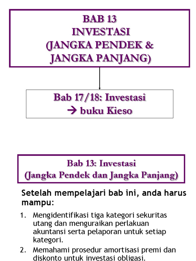 Investasi jangka pendek dan jangka panjang ppt jawaban soal 1a obligasi diketahui nominal 10 lbr 1 000 000 rp 10 000 000 kurs beli 103 bunga 12 per course hero pdf 8 manajer investasi investment manager v2 reza fahmi academia edu. Kewajiban jangka panjang adalah liabilitas yang harus dilunasi perusahaan selama lebih dari satu periode akuntansi. Investasi jangka panjang adalah investasi yang keuntungannya bisa dinikmati setelah menunggu lebih dari satu tahun.
