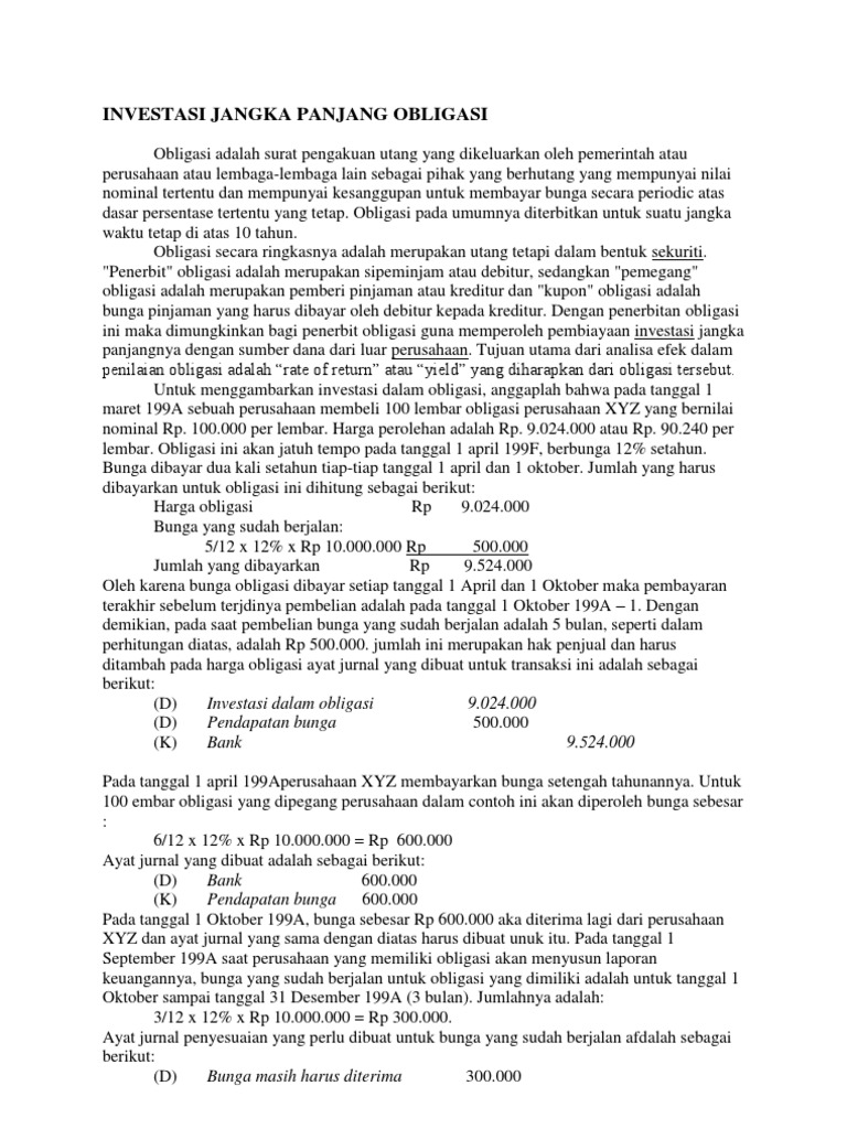 Contoh Soal Investasi Jangka Panjang Dalam Obligasi