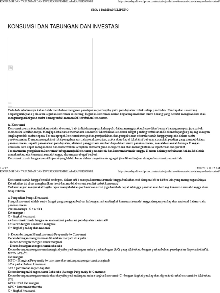 Contoh Soal Konsumsi Tabungan Dan Investasi Bagikan Contoh