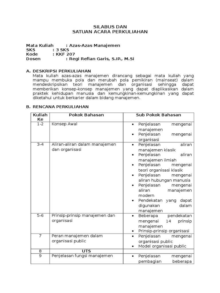 Silabus Dan Sap Azas Azas Manajemen